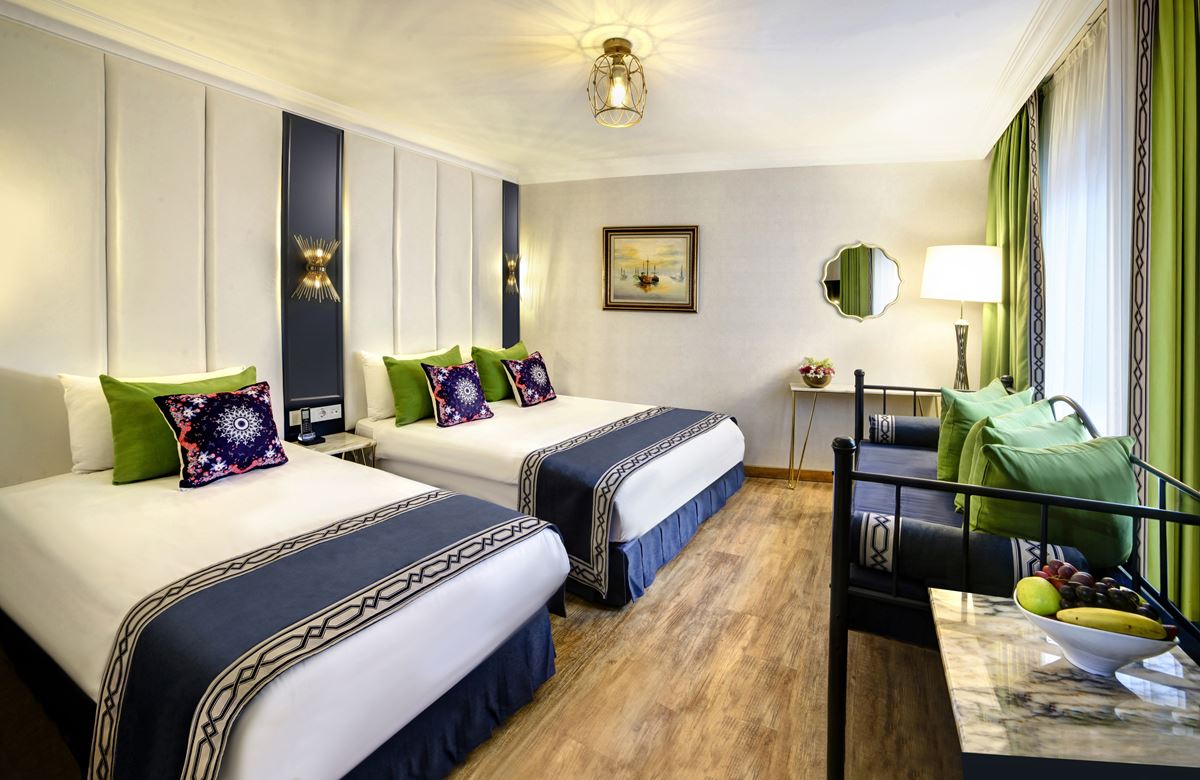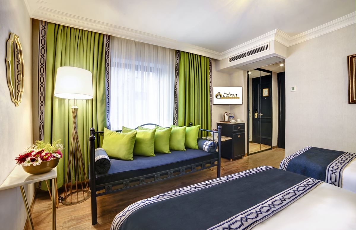 تبلغ مساحة غرفتنا 24 مترًا مربعًا وهي مصممة لما يصل إلى 4 أشخاص كغرفة عائلية.